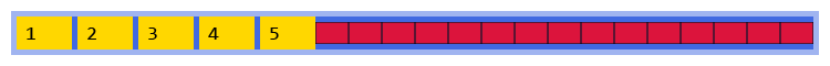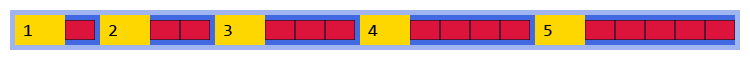 The flexbox layout engine is going to add those flex-grow values together — 1 + 2 + 3 + 4 + 5 = 15 — and then divide the available free space into 15 equal parts: